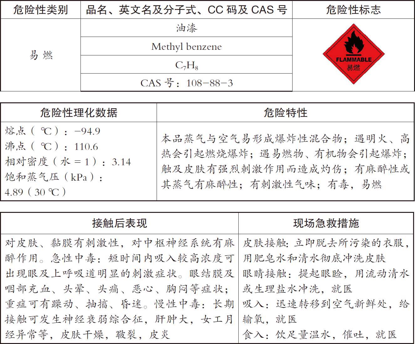 易燃液体分类、警示标签和警示性说明见GB20581—2006。