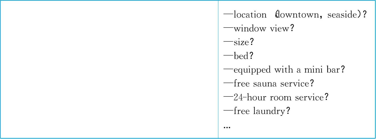 1.Tell some of your experiences in booking hotel rooms when travelling.