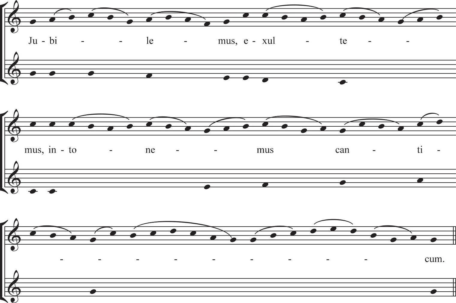 例2 纽姆式 选自《进台经:纵情欢乐》(Introitus: Gaudeamus)