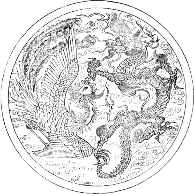 《程氏墨苑》中明人绘《龙凤呈祥》。龙象征阳刚,凤象征阴柔,阴阳和谐。