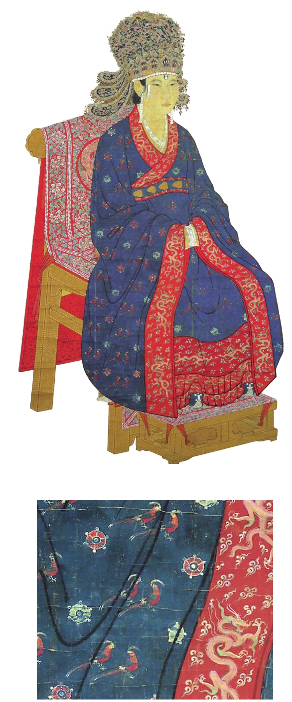 宋神宗皇后头戴凤冠,衣服上也有百只凤凰,台北“故宫博物院”藏。