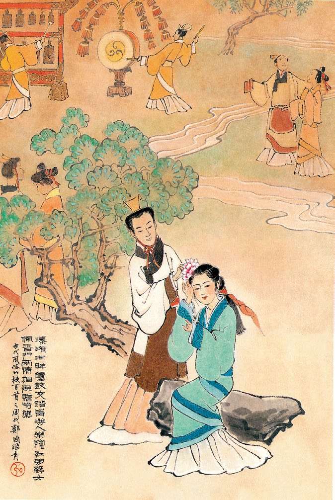 图2-1 《诗经·郑风》中的《溱洧》描述了郑国每逢夏历三月初三的上巳节,青年男女在溱洧二河的河岸上举行盛大集会的场景