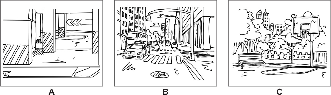 For each question, choose the correct picture.