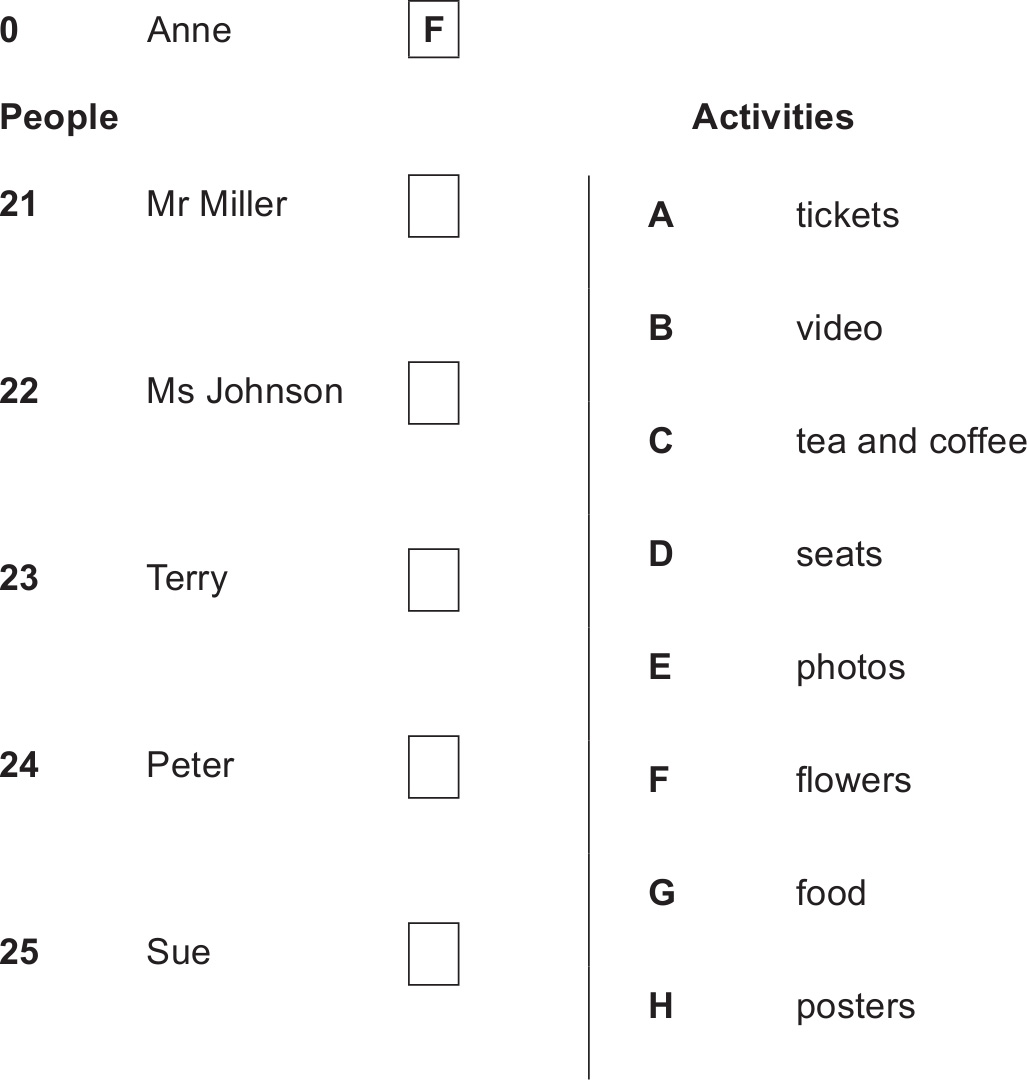 For each question, write the correct answer in the gap. Write one word or a number or a date or a time.