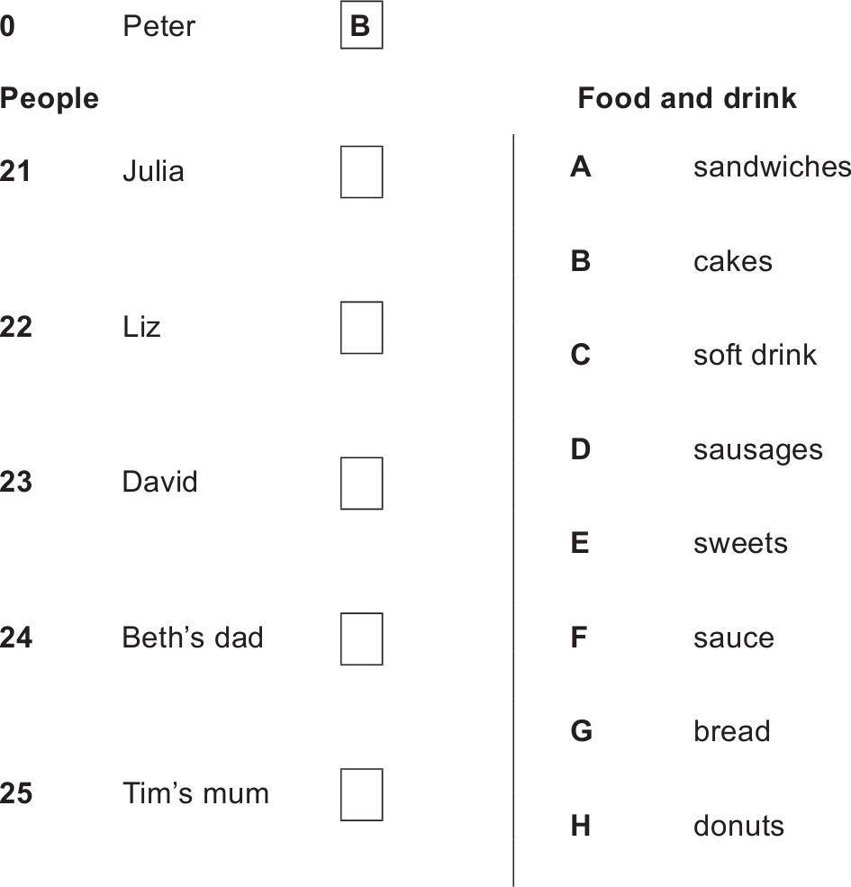 For each question, choose the correct picture.