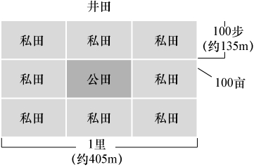 西方学者也许不大在意这句话,但这句话很有名,而且是有唯物主义的因素的。用它解释欧洲社会模式中的生产关系不行,但用来解释中国古代社会的生产关系是可以的,在这个问题上,孟子的说法就比魏特夫更合适。孟子还讲井田制,井田制反映了中国古代社会有代表性的生产关系。孟子假设说,实行井田制的农业生产模式是,一方田地,切割成9块,即井字形,分给8个家庭耕种,每个家庭耕种100亩,为私田;中间留下100亩,为公田,由8个家庭共同耕种。私田是各家各耕,收获自己的粮食;公田是合种,农民公益互助。