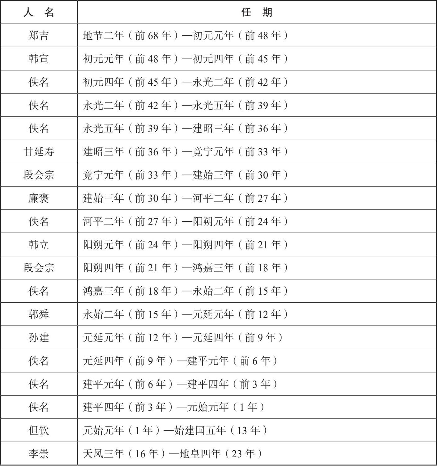 在西汉时代,西域都护共有18人。除了特殊情况,可能采取了三年一任的做法。