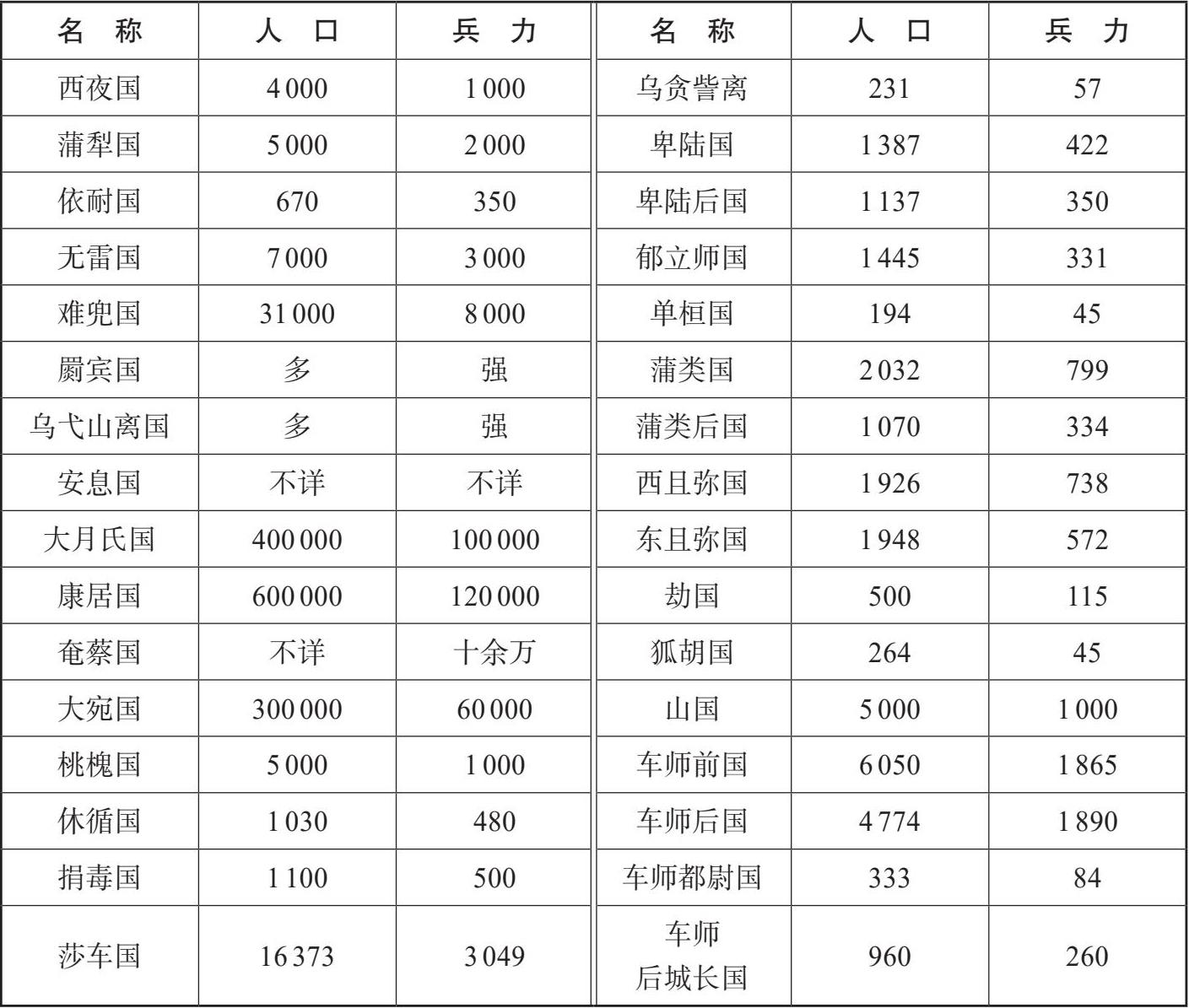 但西域国家中也有一些大国,包括罽宾、乌弋山离、安息、大月氏、康居、奄蔡、大宛、乌孙。它们的人口大都有几十万甚至数百万,
