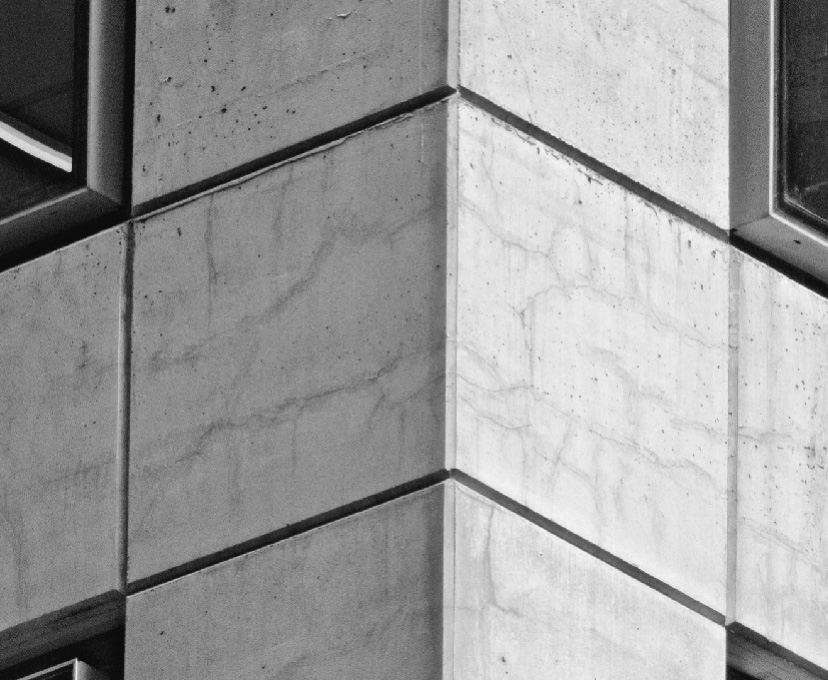 2)矩形。钢筋密集的构件或部位,裂缝会顺着钢筋方向,形成大致为矩形的网格。第1章介绍的纽约公园大道432号公寓首层梁柱结合部的裂缝就以钢筋为坐标大致为矩形网格(图4-8)。