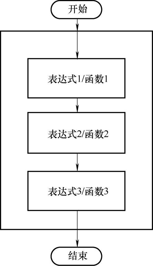 图3-5中表示一个顺序结构程序执行的过程。对于程序来说,一般顺序结构是最外层的,因为所有的程序在执行的过程中都遵循自上而下、从左到右的执行顺序。即便是中断、回调函数也遵循这一规则,只不过它们是从程序执行的不同角度来定义的。