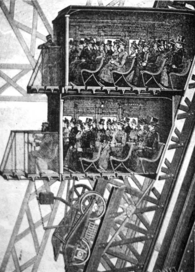 图3-18 埃菲尔铁塔的升降机(至第一平台),1889年