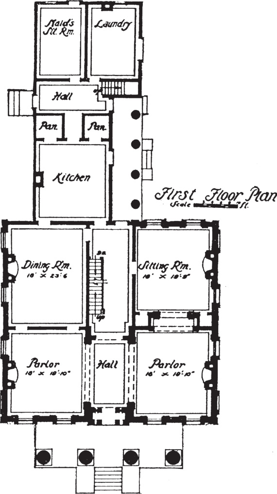 图4-7 美国某仿古住宅平面,19世纪中叶