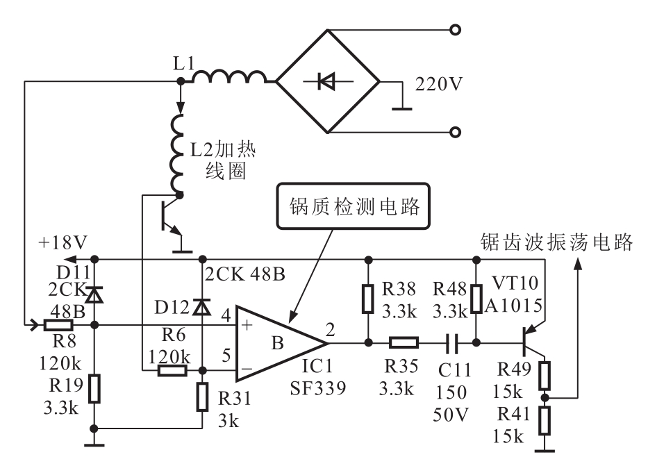 图3-18 电磁炉的锅质检测电路