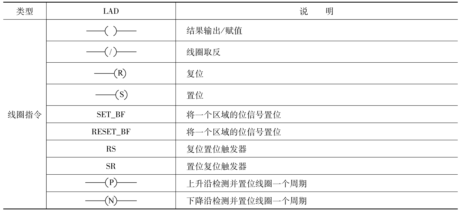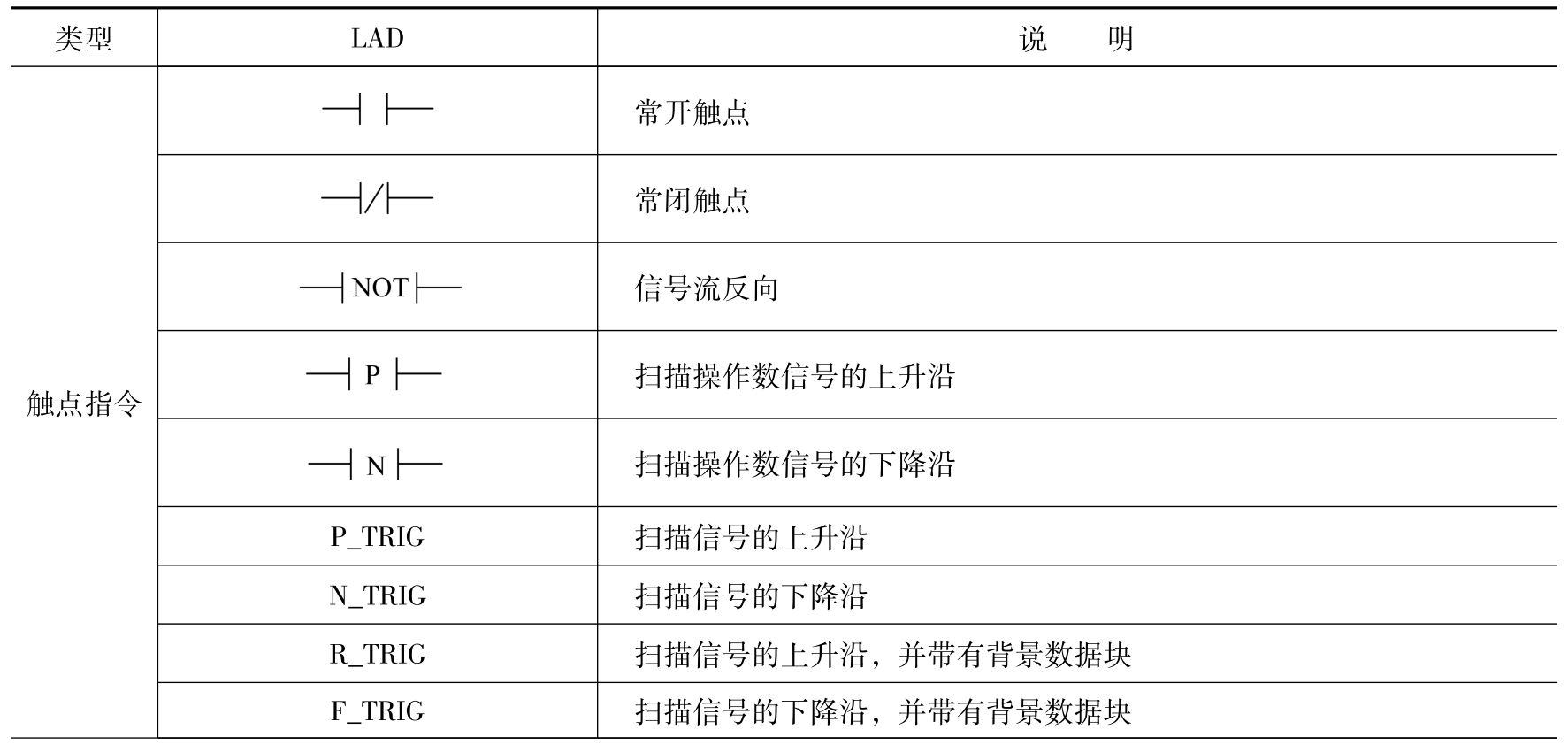 表2-1所示为常见的位逻辑指令汇总,主要包括触点和线圈指令,具体说明如下: