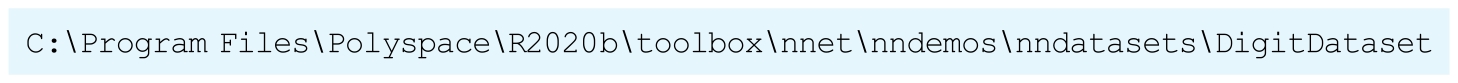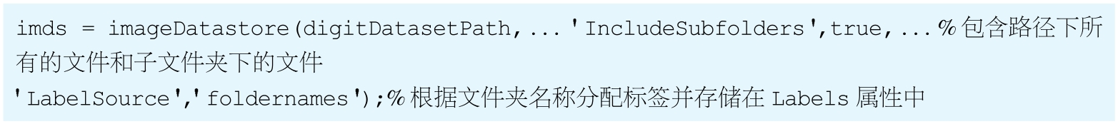 其中,digitDatasetPath存放mnist数据集路径;imageDatastore函数生成一个图像数据存储区结构体,里面包含了图像和每幅图像对应的标签。