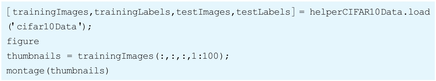 【例1-3】 如何下载CIFAR-10数据集并导入MATLAB工作空间。