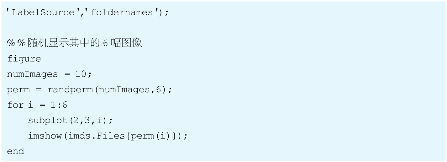 前面介绍了如何加载数据集,在加载数据集之后,需要将数据集划分为训练集和验证集。在MATLAB深度学习工具箱中,提供了splitEachLabel函数将数据存储区中的数据集划分为训练集和验证集,具体使用方法如下。