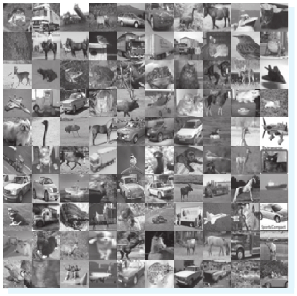 图1-10 随机显示的CIFAR-10数据集中的100幅图像