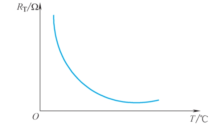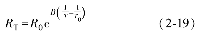 式中, R T 为温度 T 时的电阻值; R 0 为温度为 T 0 时的电阻值; B 为常数,由材料、工艺及结构决定。热敏电阻的热电特性曲线如图2-41所示。