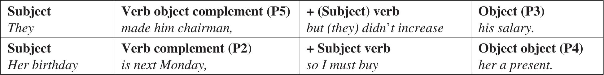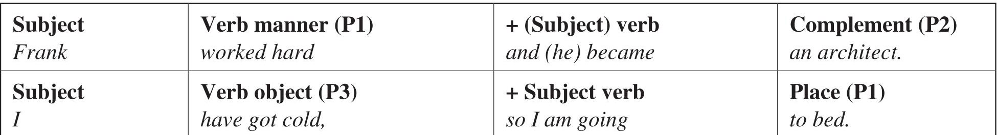 The five simple sentence patterns can be joined by means of coordinating conjunctions.