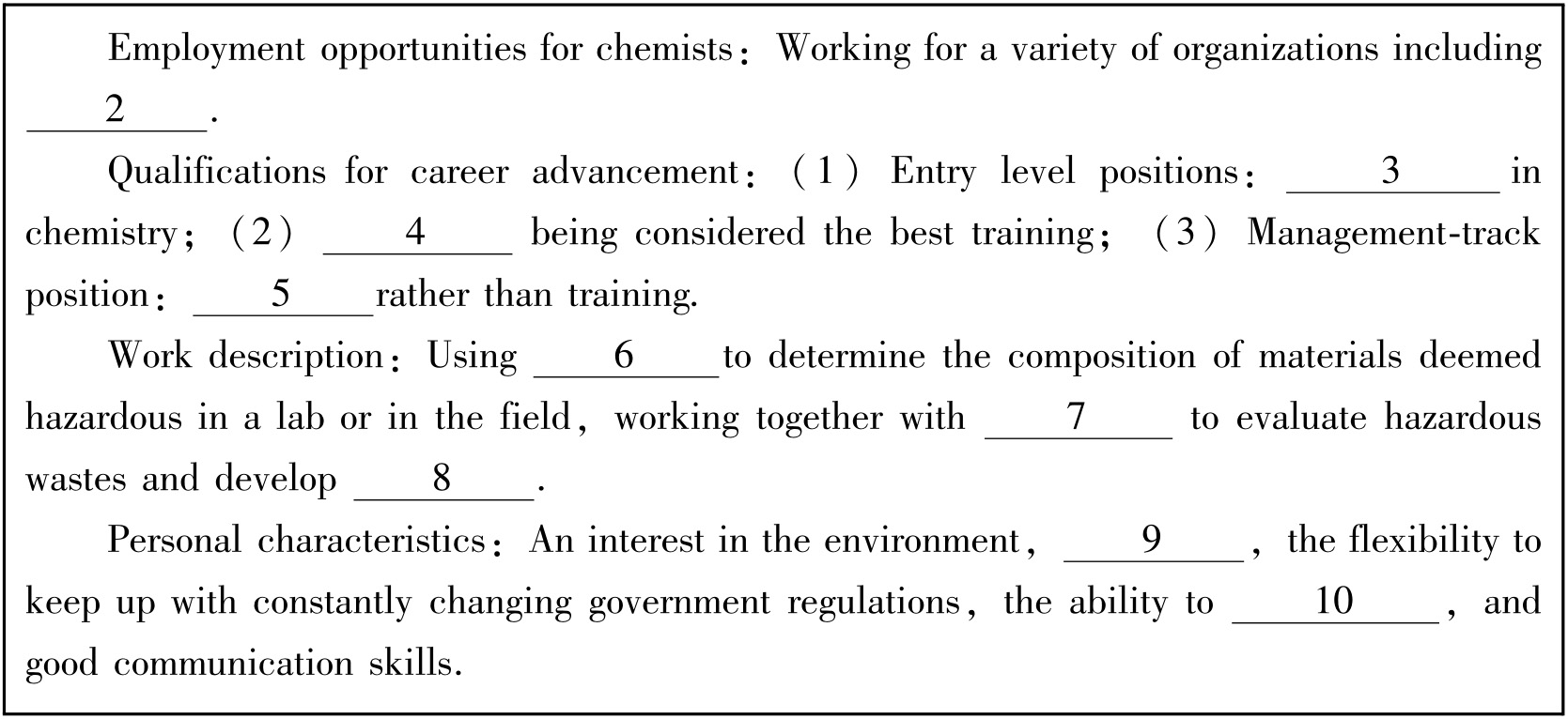 5.About 10%of the graduates went to graduate schools,where they would receive advanced education in traditional chemical engineering areas and get jobs doing process or control systems design or___________________________.