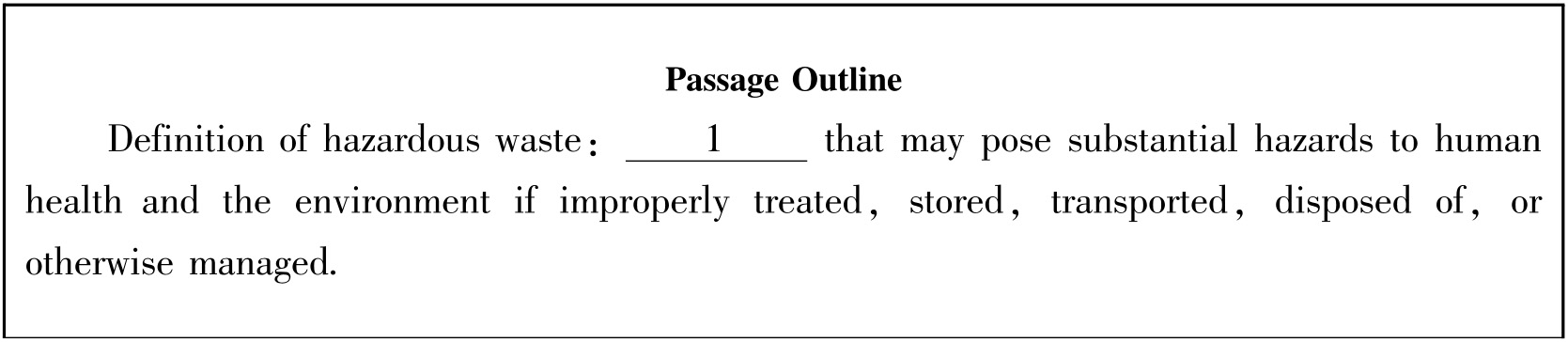 Read the passage again and fill in the blanks with the information from the passage to complete the passage outline.