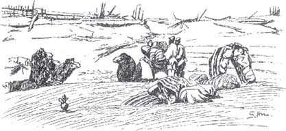 考察人员在罗布泊大泽中前行(斯文·赫定绘)