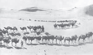 斯文·赫定率部向沙漠进发的骆驼队