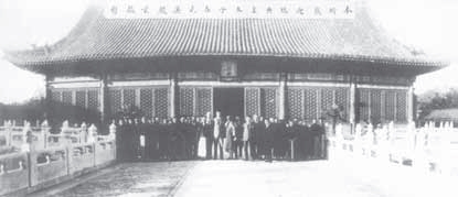 1926年瑞典王储参观位于故宫内的北平古物研究所时,在武英殿前留影。(故宫博物院提供)