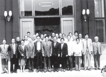 李铁映、宋健(前排左六、七)与“工程”领导小组成员及专家组成员合影于中南海会议室
