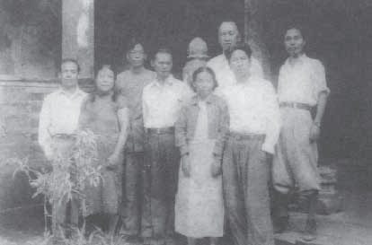 1941年,在抗战中流亡四川南溪李庄的中央研究院史语所、中央博物院筹备处、中国营造学社等三家学术机构共同组织川康调查团,对彭山一带崖墓进行考古调查发掘,冯汉骥被邀加入,此为在彭山发掘时考古人员合影。左起:吴金鼎、王介忱、高去寻、冯汉骥、曾昭燏、李济、夏鼐、陈明达。
