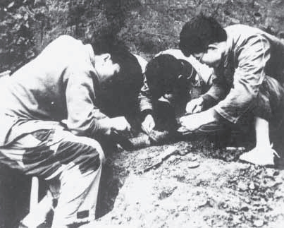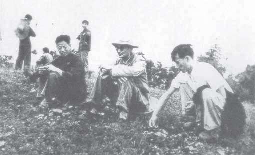 当然,就在冯汉骥率领师生于1962年6月奔赴月亮湾之时,他撰写的这部煌煌巨著正处于紧张的杀青阶段。在这种情形中,他毅然投笔离开书案,打起背包和学生们一道乘一辆敞篷汽车赶赴工地。按他一贯的想法与做法,作为学者固然需要通过学术成果建立自己的名山大业,但作为一名大学教授,培养人才,传递学术薪火并在后学身上发扬光大乃是自己的首要职责。正是基于这样一种思想境界和为人处事准则,他决计放下手中正在撰写着的著作,亲自率师生来到田野调查现场,结合实际将自己平生所学一点一滴地滋润到晚辈的心田。在月亮湾的三层台地上,冯汉骥指导年轻的教师与学生在文化层堆积较厚的地方做了详细的调查,并进行了一些小型的发掘。在此期间,他除了蹲在坑中近距离指导学生外,还拿出一部分时间带领师生走出月亮湾,扩大调查范围,对整个三星堆区域进行了一次较大规模的科学勘察。