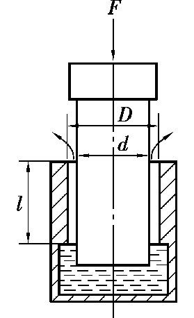 7.如图 2.26 所示的柱塞,直径d = 22 mm,缸套的直径D = 22 mm,长l = 70 mm,柱塞在力F =50 N的作用下向下运动。如果缸套与柱塞同心,油液的动力黏度为μ = 0.784 × 10 -6 Pa·s,求柱塞下落 0.1 m所需的时间。