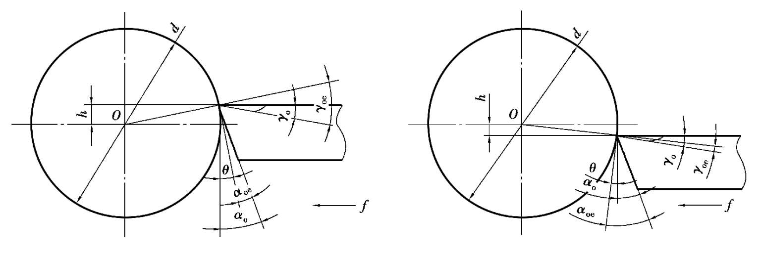 同样,刀具实际安装位置也影响工作角度的大小。只有采用刀具工作角度的参考系,才能反映切削加工的实际情况。
