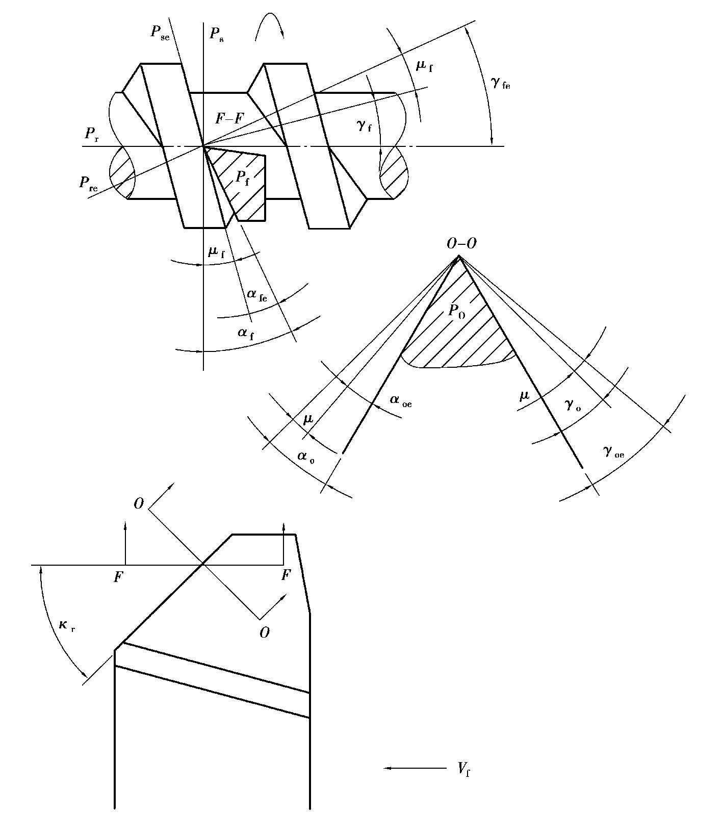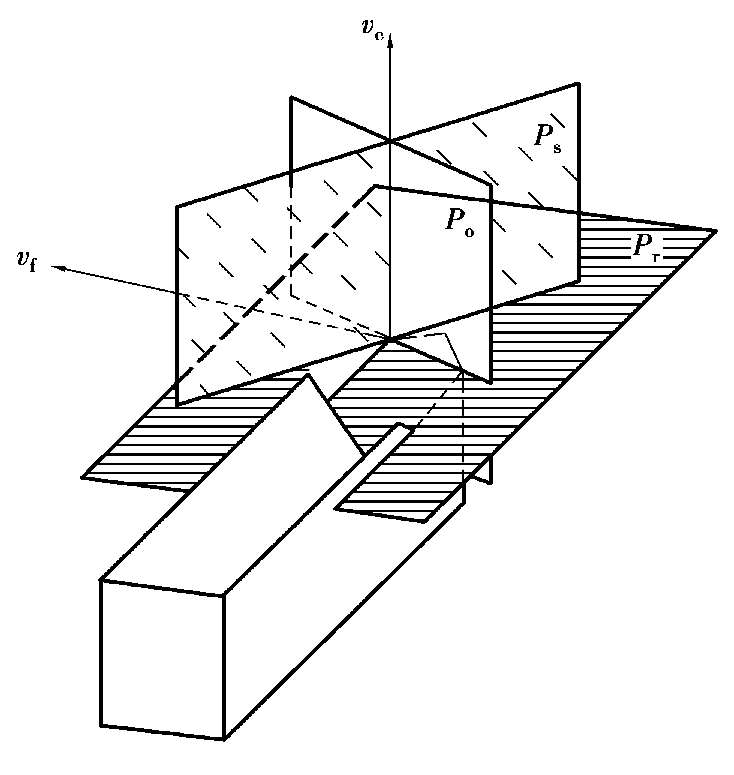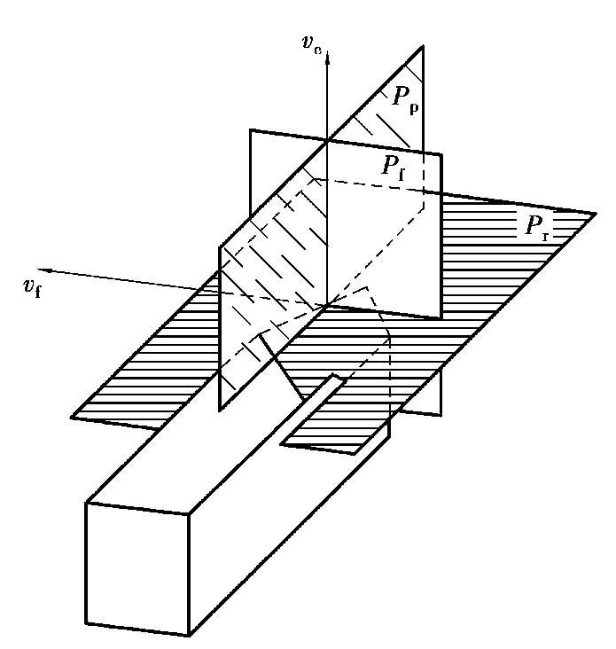 假定工作平面(P f )———过切削刃上选定点,同时垂直于刀杆中心线与基面P r 的平面,它与进给方向v f 平行。