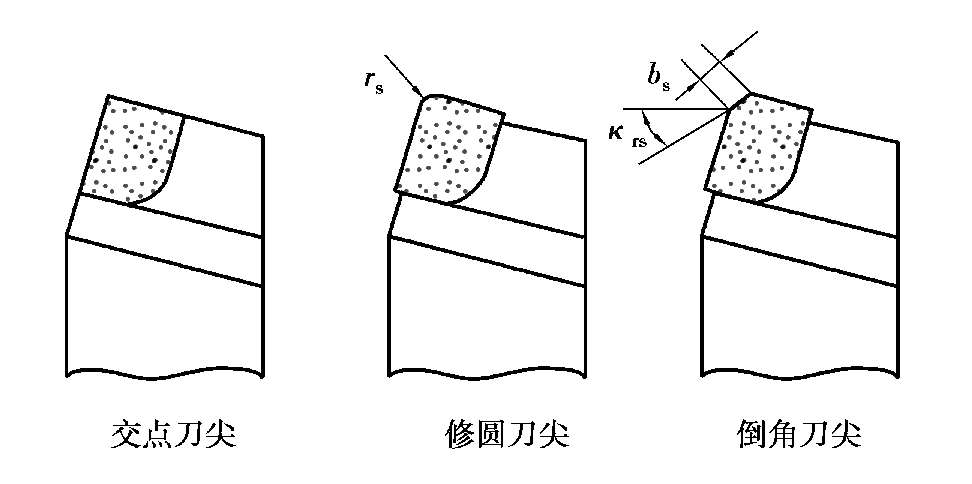 刀尖———主、副切削刃的交点。但多数刀具将此处磨成圆弧或一小段直线,如图2.10所示。