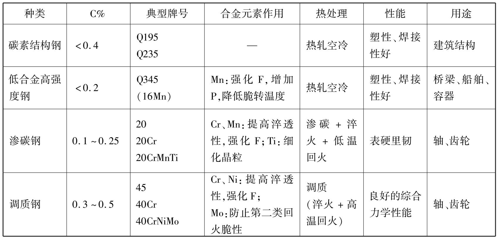 钢是机械工业中应用最广泛的金属材料,在工业生产中起着十分重要的作用。在此重点介绍黑色金属,特别是各种钢材的分类及选用,对于非金属材料可以参阅其他相关专业书籍。