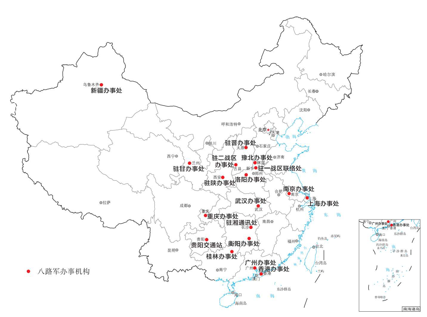 八路军办事机构分布图(1937 年秋—1945 年秋)