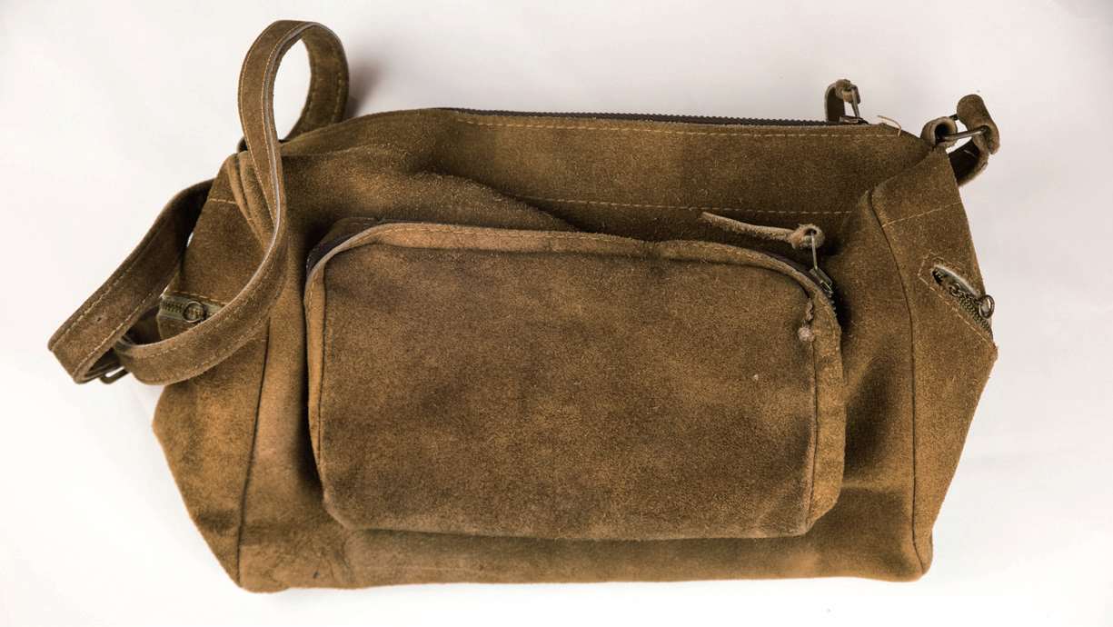 1936年,美国记者埃德加·斯诺的采访包。底部有:TOP GRAIN GENUINECOWHLDE MADE IN U.S.A R-615。1985年,海伦将此物交给安危。1990年,安危将此物捐赠给八路军西安办事处纪念馆