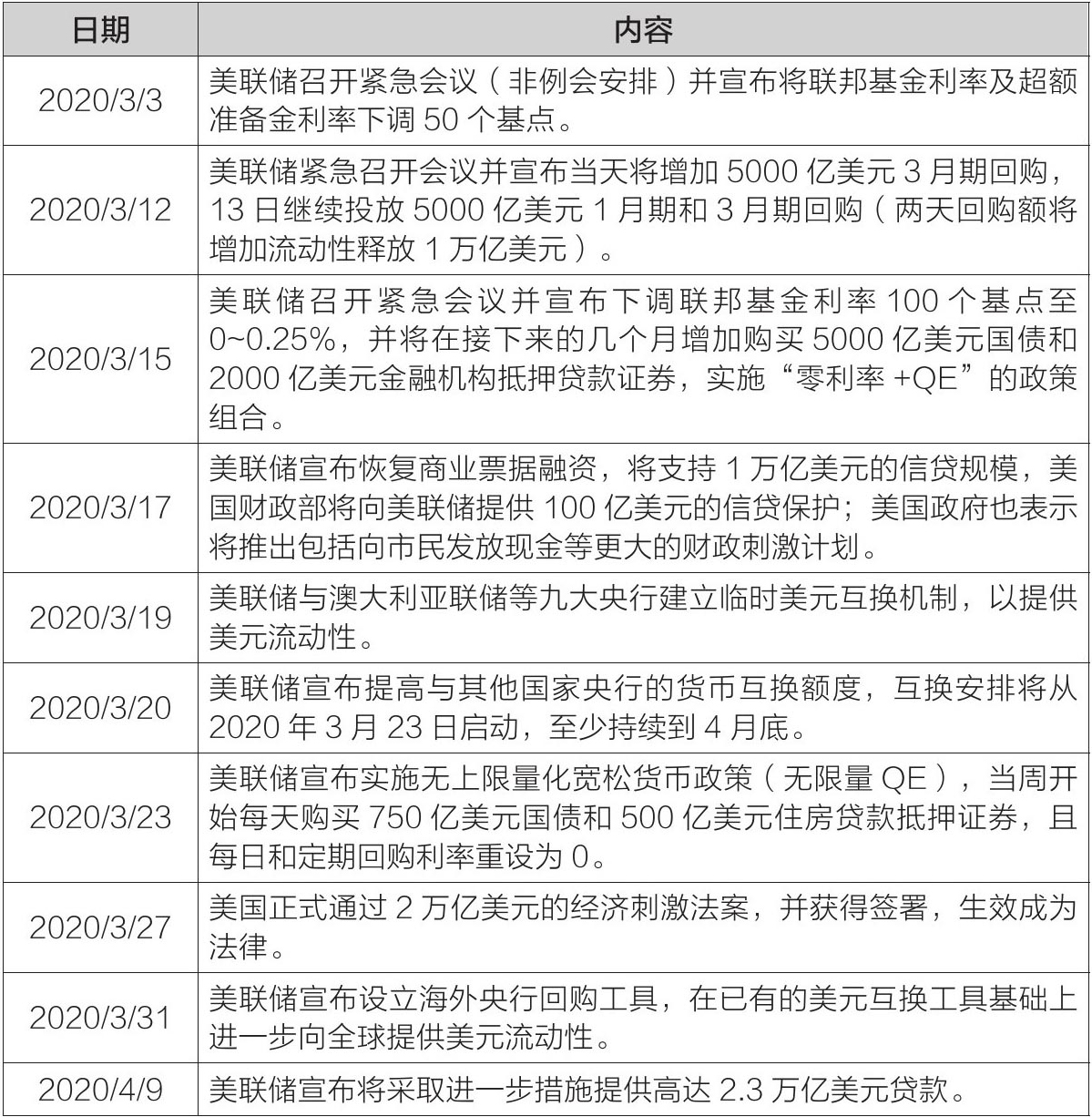 然而,在面对“新冠危机”引发的流动性挤兑时,2020年3月以来,美联储的行动显然更为迅速和有力(见表1-1)。