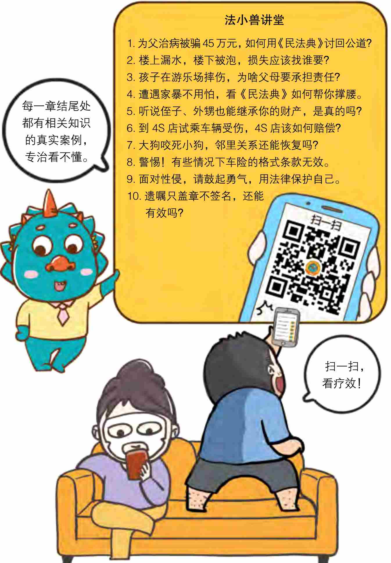 在本书里,法小兽会带大家了解在什么情况下应该用哪些法律条文来维护自己的合法权利。总之,这本《三分钟漫画民法典》主要有三大功能: