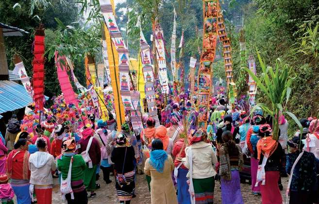 图 20 云南省澜沧县芒景上寨布朗族在赕佛仪式上使用彩色纸做成各种礼品献给佛祖(杨丽仙拍摄于2013年)
