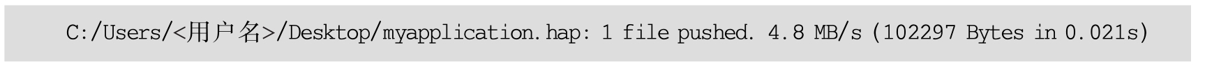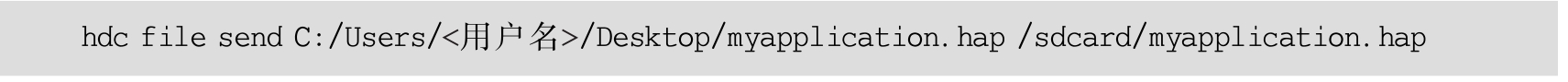 例如,将桌面上的myapplication.hap复制到手机的sdcard目录中的典型命令为(“<用户名>”设置为真实的Windows用户名):