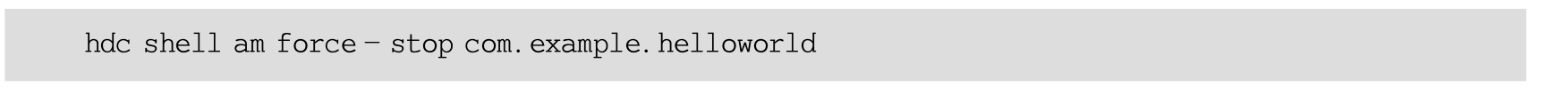 当然,shell命令也可以独立执行。例如,停止BundleName为com.example.helloworld的应用程序的命令为