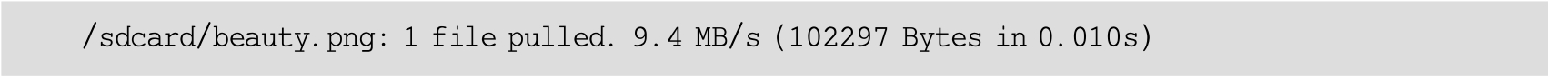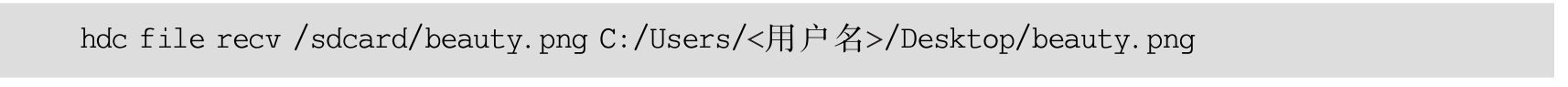 例如,将鸿蒙设备sdcard目录中的beauty.png复制到Windows桌面的命令为(“<用户名>”设置为真实的Windows用户名):