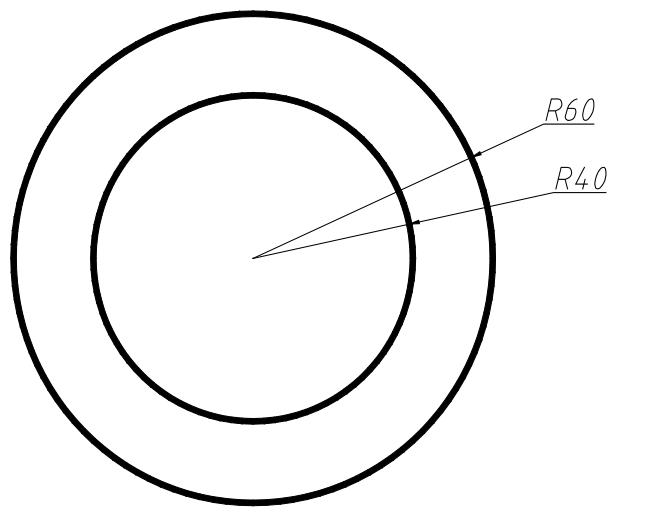 01 在命令行输入C,执行“圆”命令,任意指定一点为圆心,输入半径分别为60和40,绘制两圆如图2-91所示。