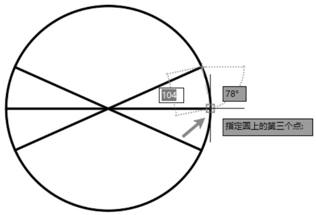 05 单击水平线段左侧端点,指定圆上的第一个点,如图2-104所示。