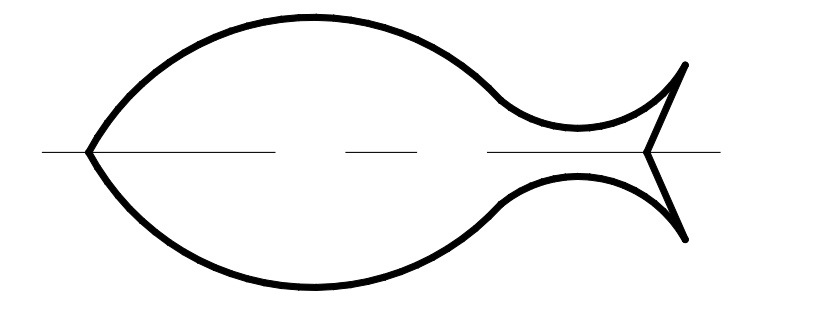 05 在命令行输入MI执行“镜像”命令,选择除中心线外的线条及鱼图形的一半,然后以中心线为镜像线,镜像图形的最终效果如图2-125所示。