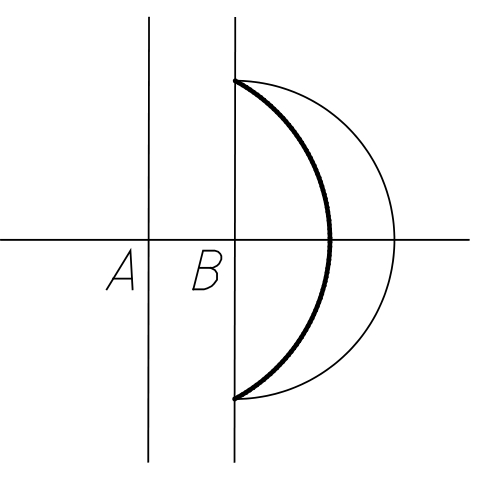 04 使用相同的方法绘制第二段圆弧。圆心选择A点,圆弧两端与第一段圆弧两端相交,结果如图2-129所示。