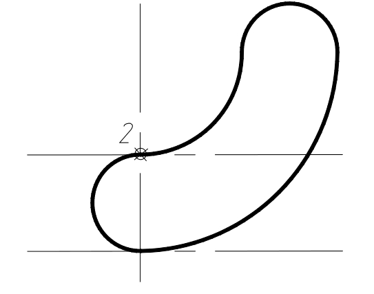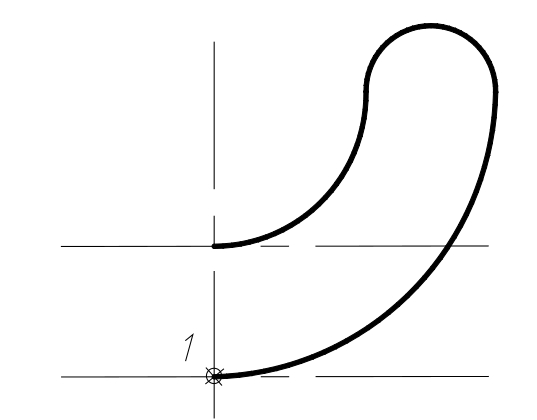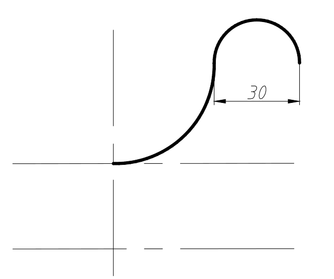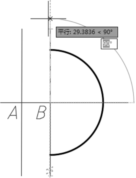 03 向上拖动光标,保持与垂直中心线平行,然后在延伸线附近单击一点,即可绘制出第一段圆弧,如图2-128所示。